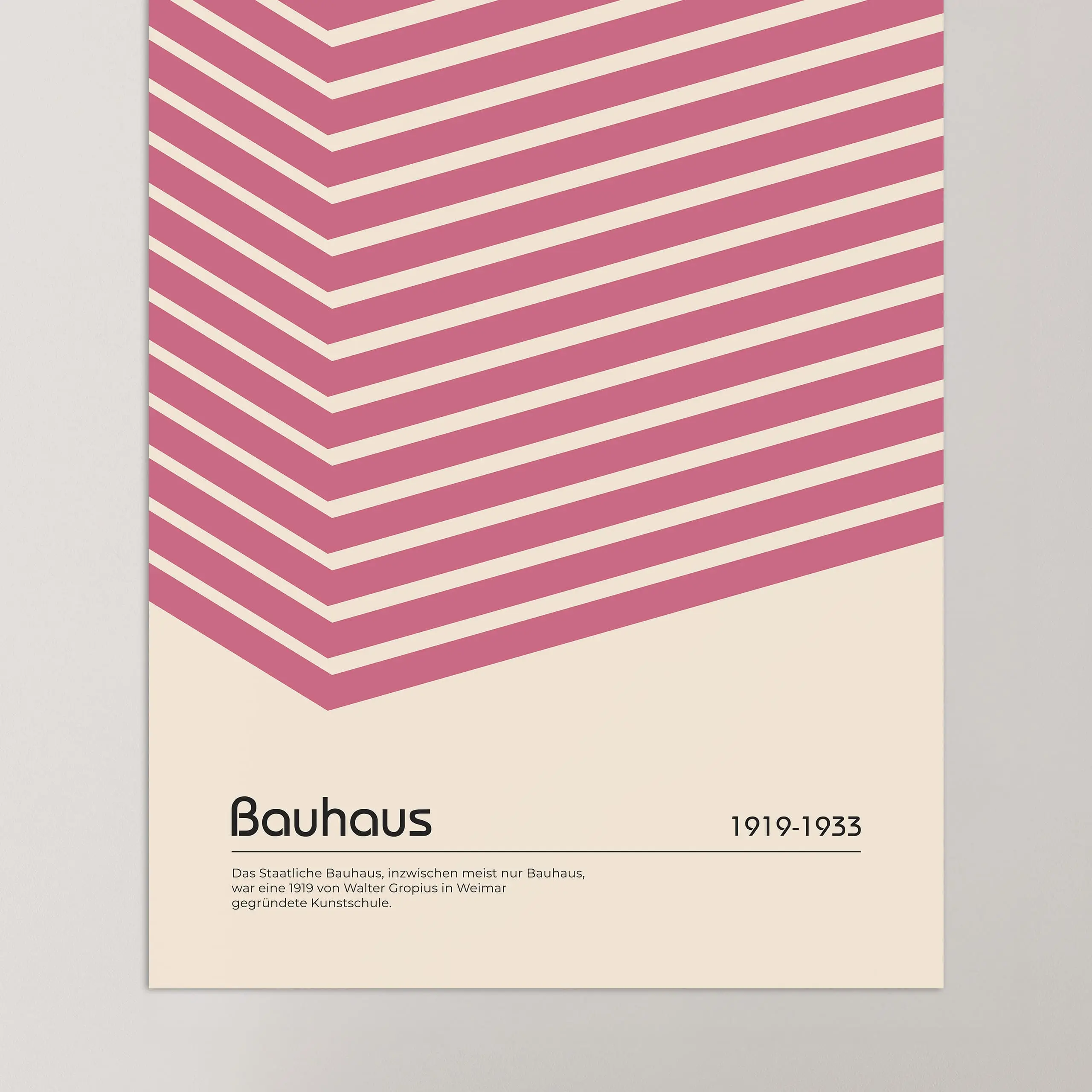 Cette affiche de couleur rose Bauhaus est constituée de lignes parallèles coudées sur fond beige.