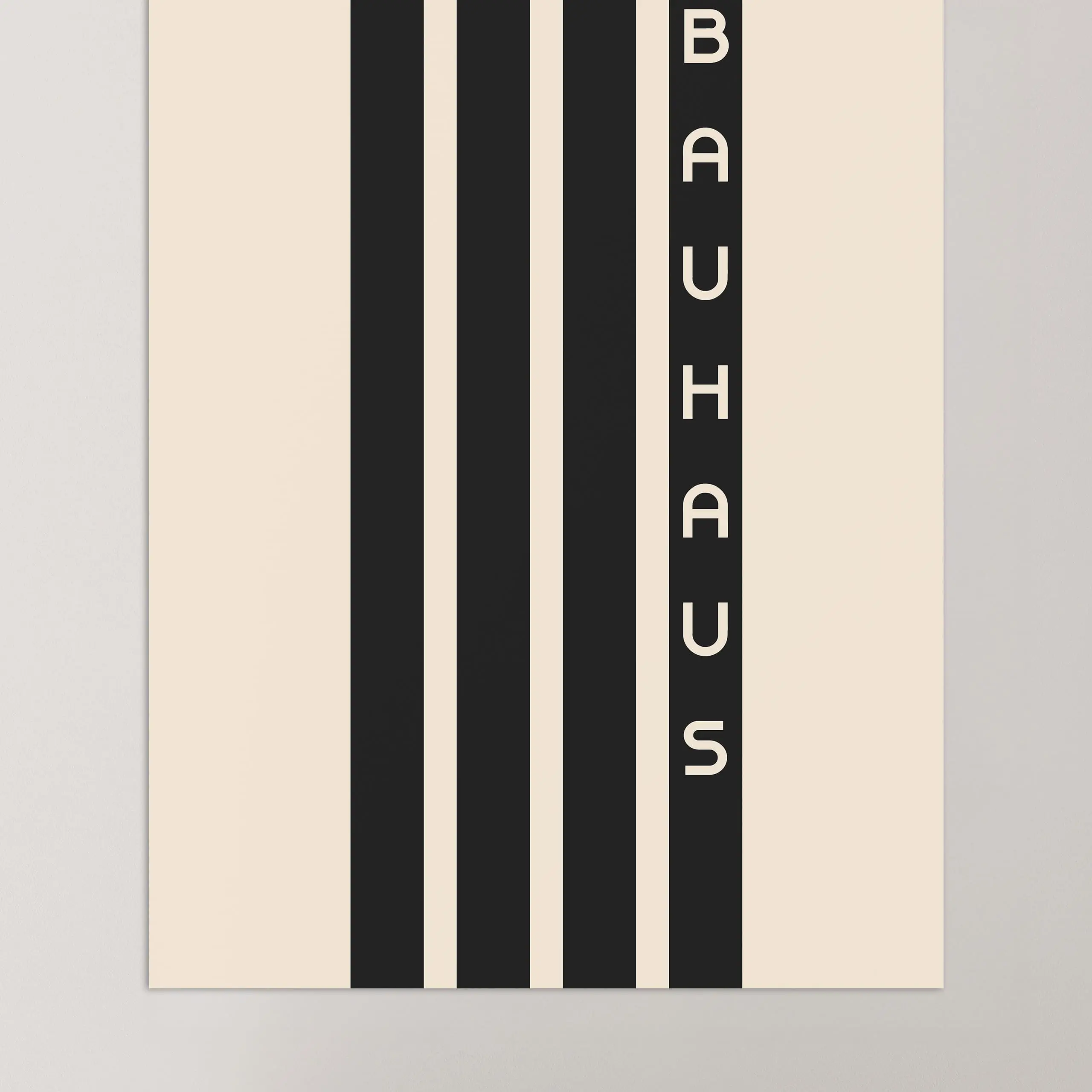 Cette affiche minimaliste de couleur noire Bauhaus est composée de lignes verticales sur fond beige.