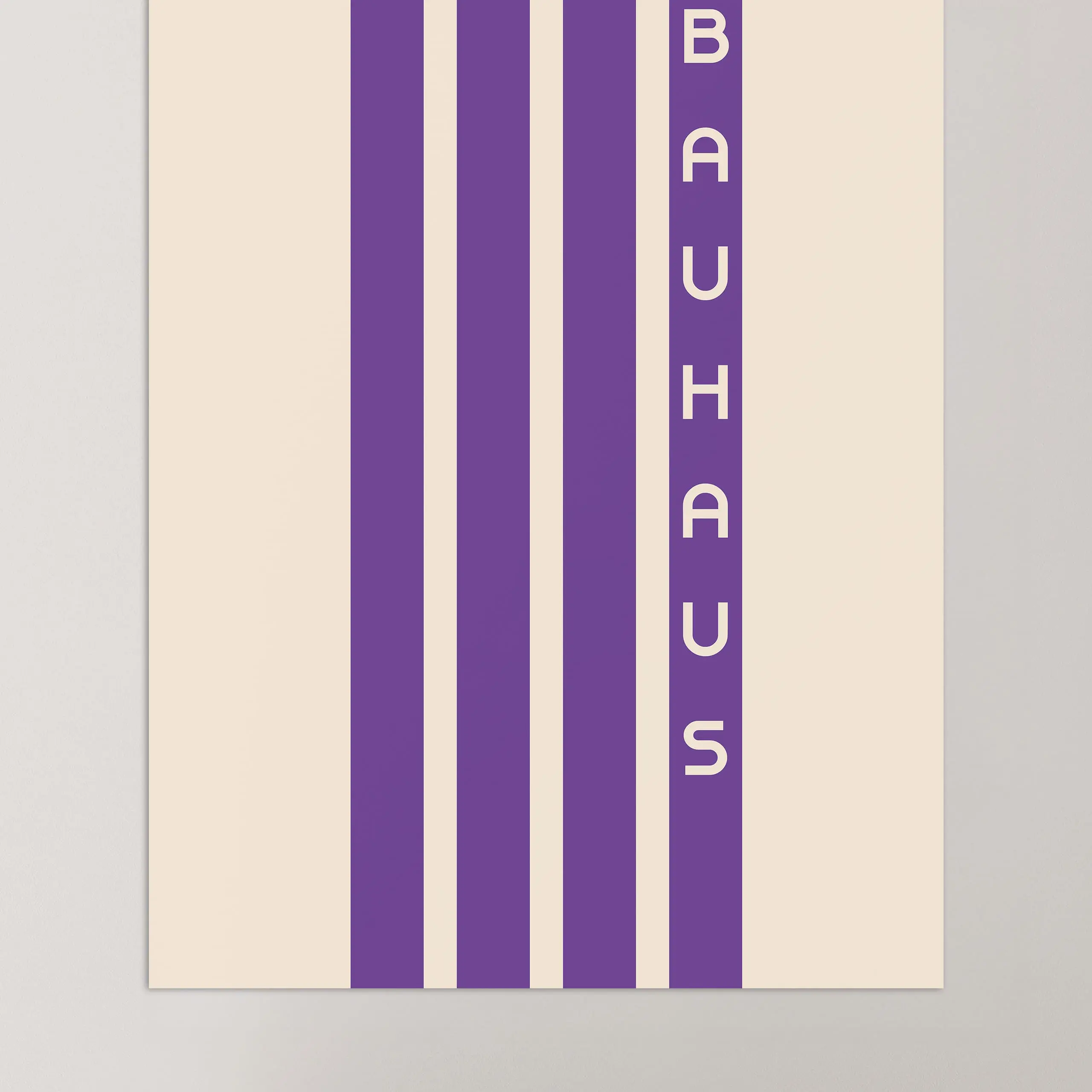 Cette affiche minimaliste de couleur violette Bauhaus est composée de lignes verticales sur fond beige.
