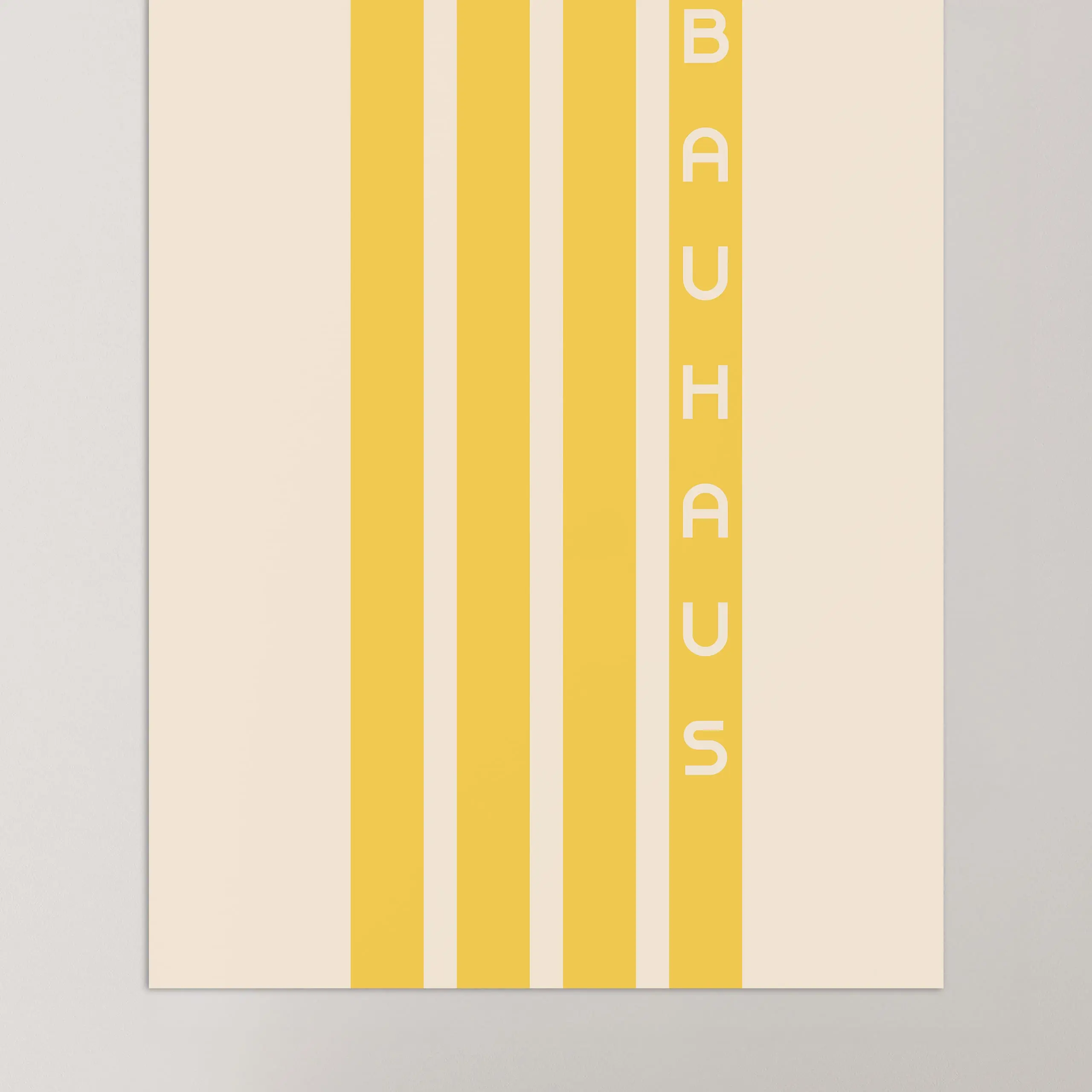Cette affiche minimaliste de couleur jaune Bauhaus est composée de lignes verticales sur fond beige.