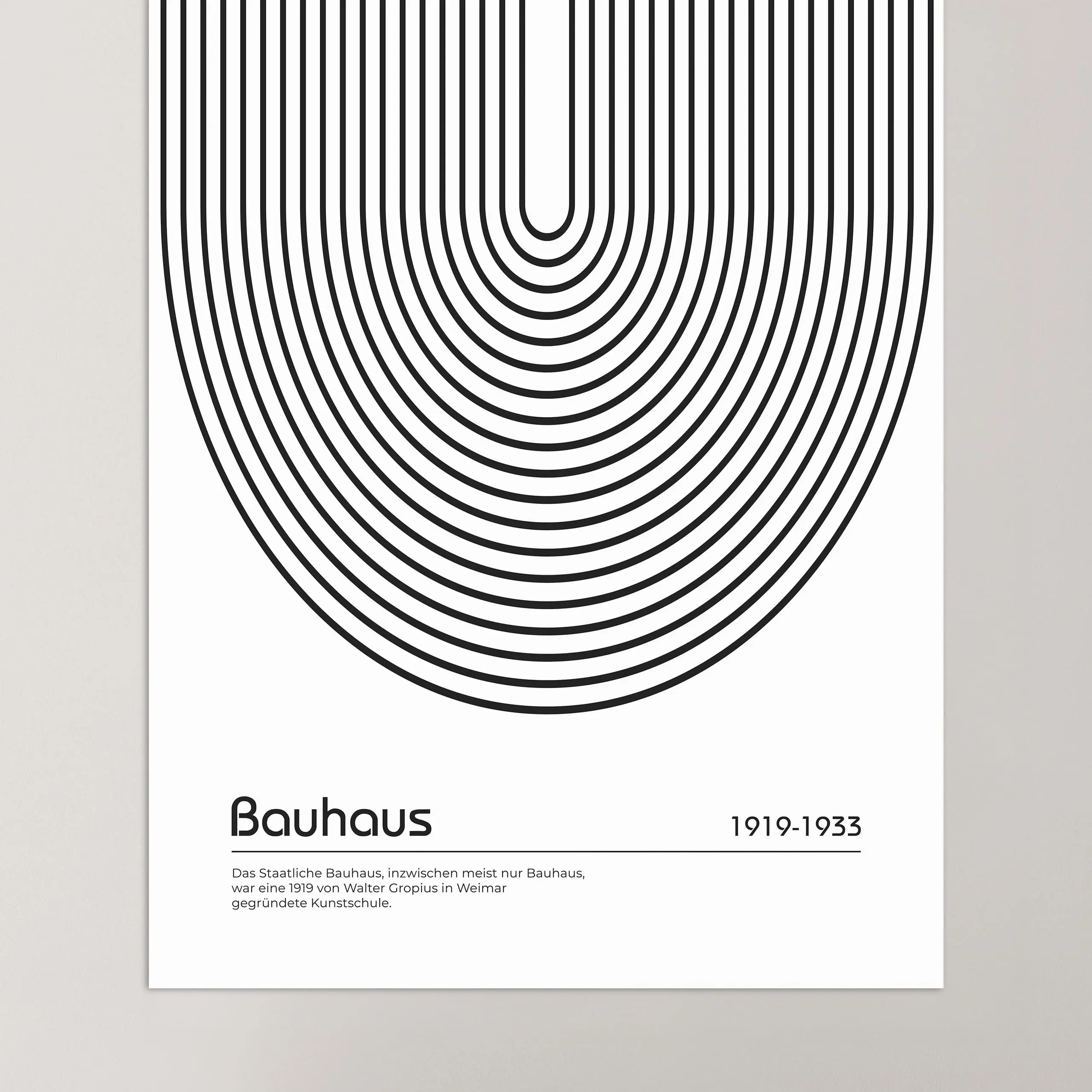 Cette affiche vintage minimaliste de couleur noire Bauhaus est composée de lignes arquées sur fond blanc