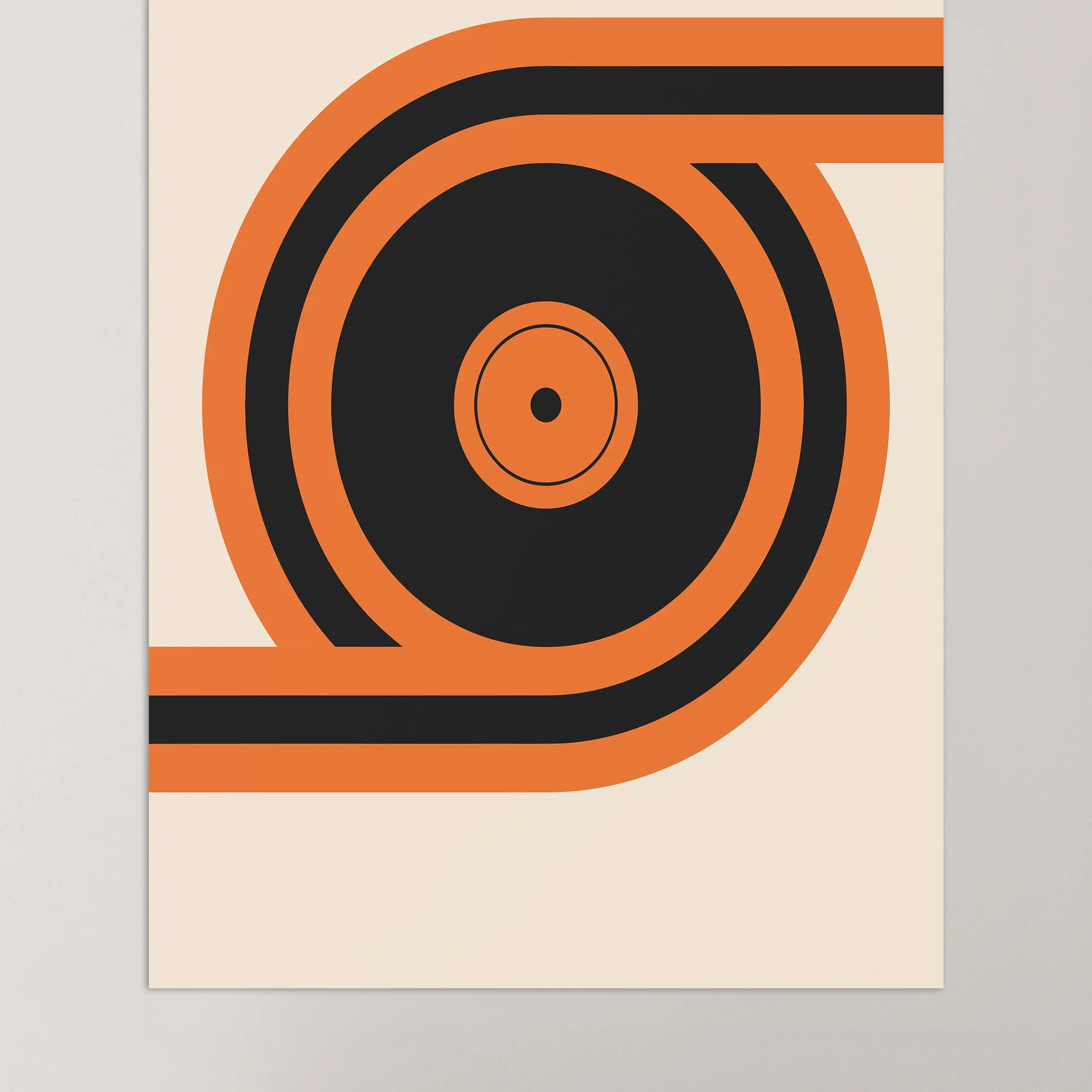 Cette affiche minimaliste vintage de couleur orange Bauhaus est composée d'une forme circulaire abstraite et libre d'interprétation sur fond beige.